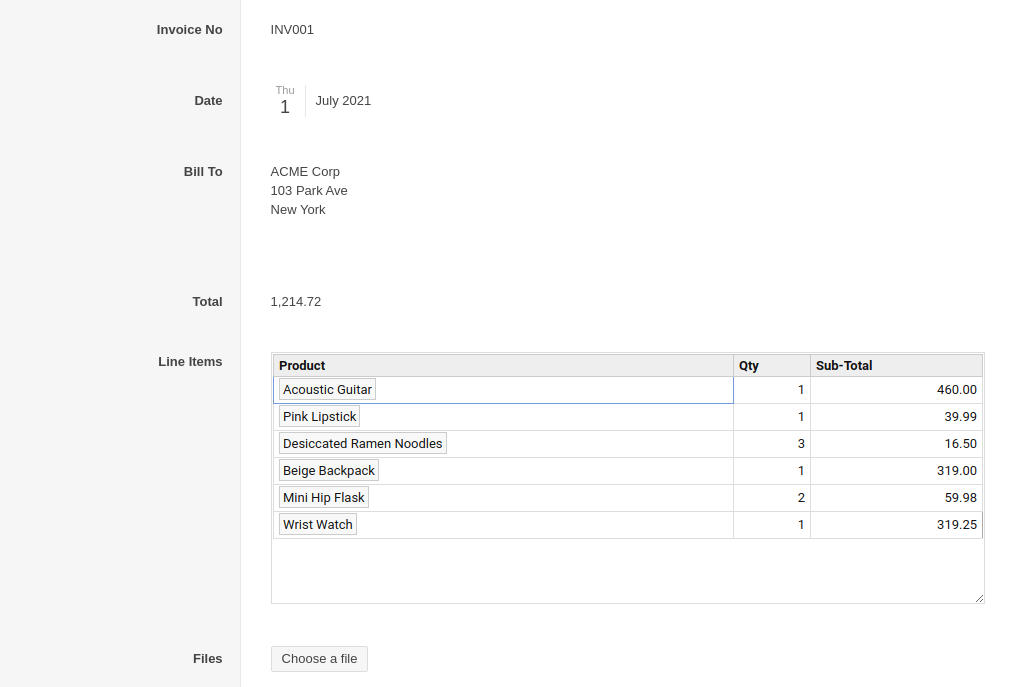 </style>One important element is the default for the relationship field back to the master app. In this case, it's "Invoice", which is a relationship field back to the Invoice app.